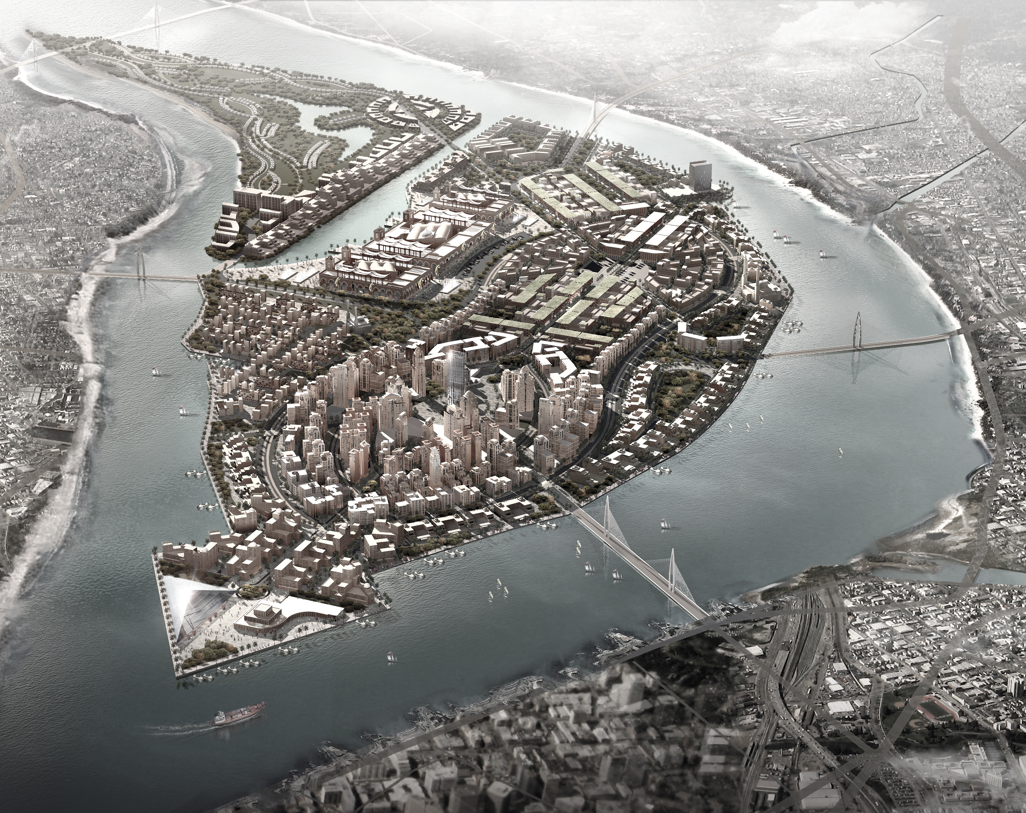 The Al-Warraq Island development is a part of the Egyptian Government’s vision to develop Cairo into a 21st Century Global City. This project will set a new standard in Egypt’s modernization initia- tives, over the next decade, by offering a high international standard and quality of life for the resi- dents of Cairo.