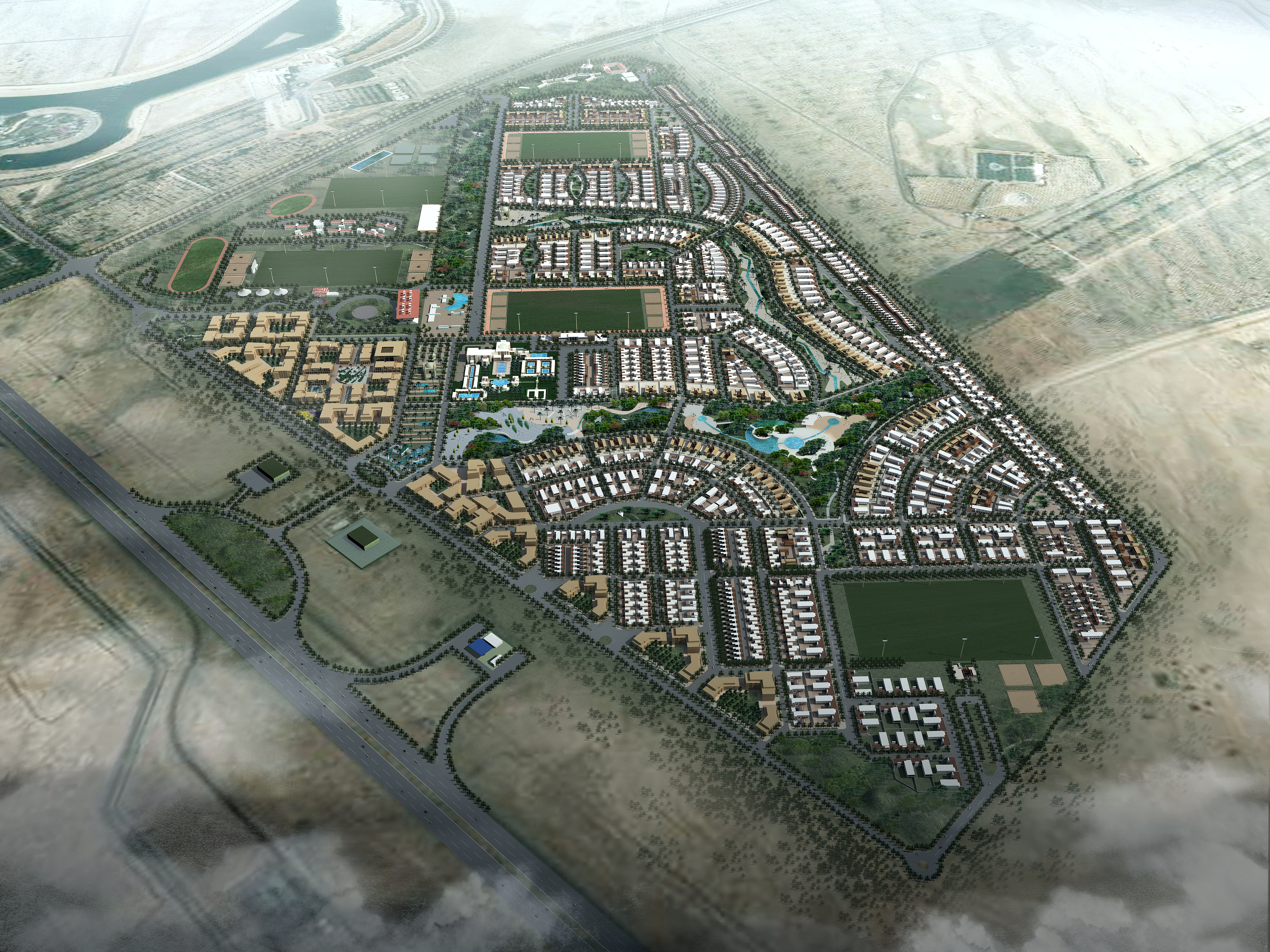 development around multiple polo fields including residential typologies,
