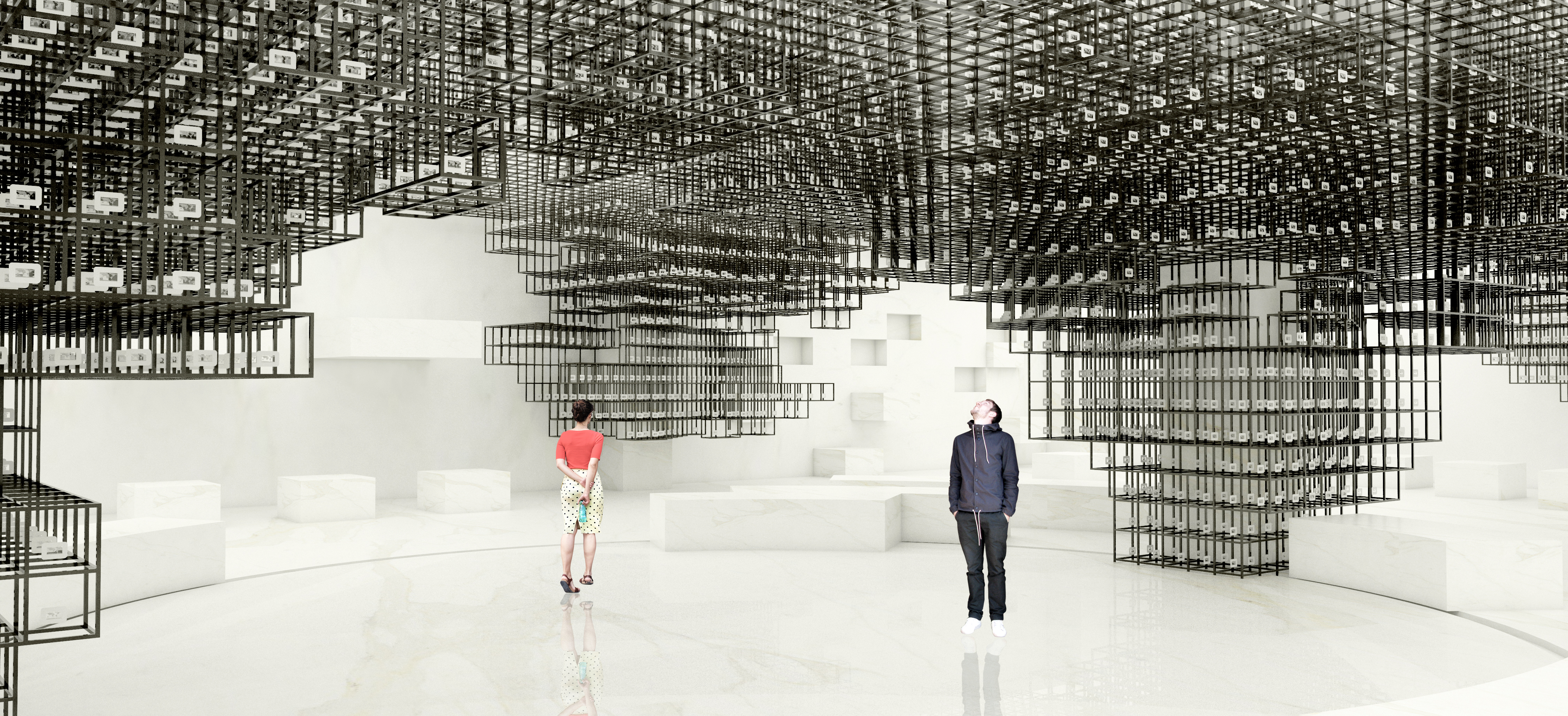 The pavilion of Montenegro triggers a curious sense of enchantment within the viewer from afar; tiny specks of light that appear to be growing up and into the pavilion are held in what appears to initially be a dense network of branches but the visitor, now within the vicinity of the pavilion apprehends the growing tree as an intricate and delicate aggregated structure.